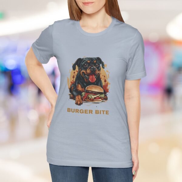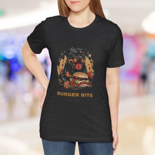 Feed Your Rotties Hunger in Style with Burger Bite! Unleash their burger-loving side with this quirky tee. Comfy fit, vibrant design, perfect for any Rottie lover. Get yours now!