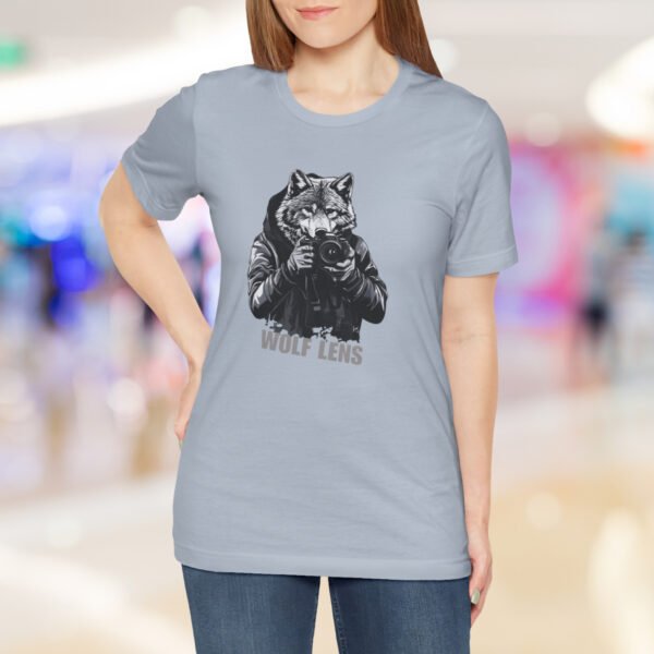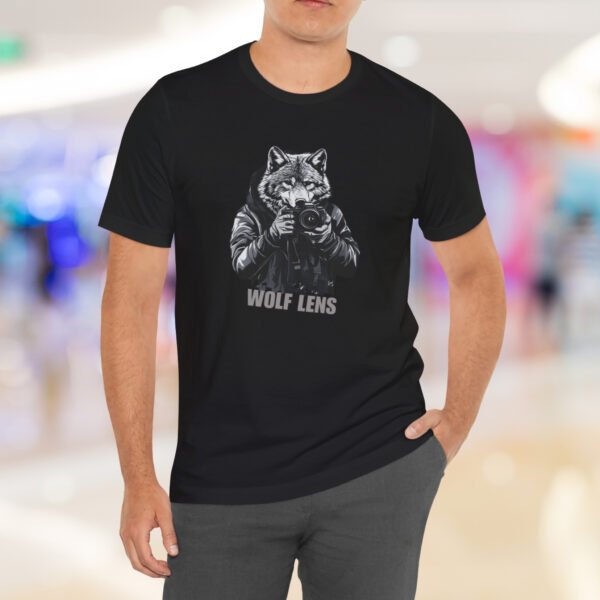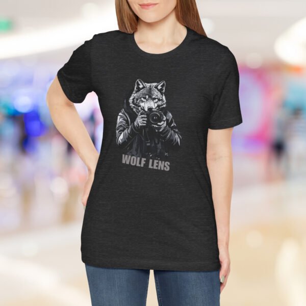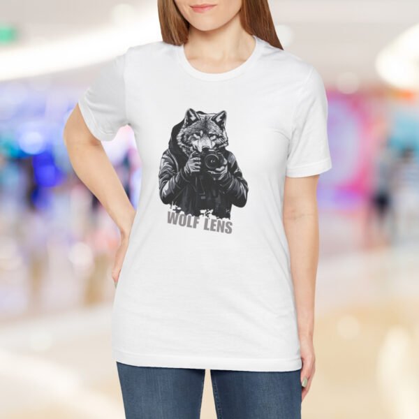 Capture lifes raw beauty with the Wolf Lens (Wolf) T-shirt! Embrace your inner photographer with this comfy tee featuring unique photography-inspired design. Stand out and snap up this stylish must-have!
