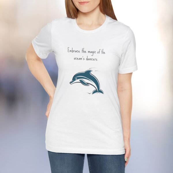 Dive into the enchanting world of oceans dancers with our Embrace the Magic T-shirt! Designed for all sea-loving souls, feel the playful spirit of dolphins wherever you go. Unisex fit, premium comfort, and eco-friendly materials.