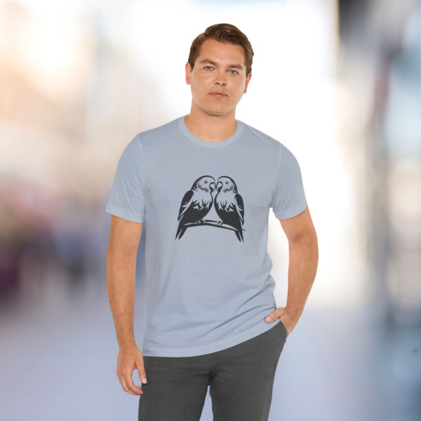 Fly high with our Flight of Fancy Parakeets tee! Featuring a cool dark grey and white design, this unisex shirt is perfect for bird lovers. Stand out in style with this fun and comfy must-have!